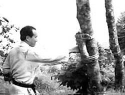 Masutatsu Oyama, le créateur du karaté Kyokushin Kai Kan, est né en 1923 en Corée du Sud. À l'âge de neuf ans, il part vivre avec sa soeur en Manchourie, dans le sud de la Chine où il étudie le Kempo chinois. À l'âge de 12 ans, il revient en Corée où il continue à pratiquer le Kempo coréen. En 1938, à l'âge de 15 ans, il part au Japon afin de devenir pilote d'avion de chasse. Après avoir étudié le judo, il devient l'élève de maître Gichin Funakoshi. Il obtient le grade de 2e dan à 17 ans et 4e dan à 20 ans. Il apprend ensuite le karaté Goju Ryu sous l'enseignement du maître coréen So Nei Chu. C'est lui qui incite Mas Oyama à dédier sa vie au karaté et à se retirer de la civilisation pour entraîner son corps et son esprit.