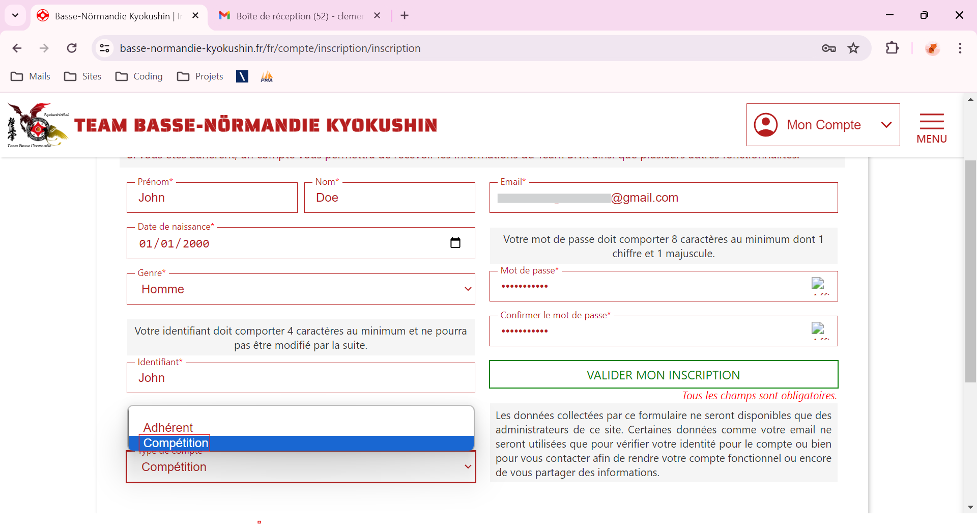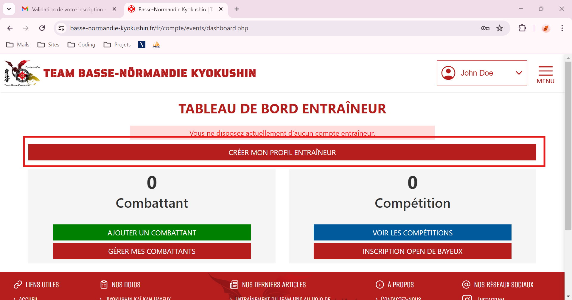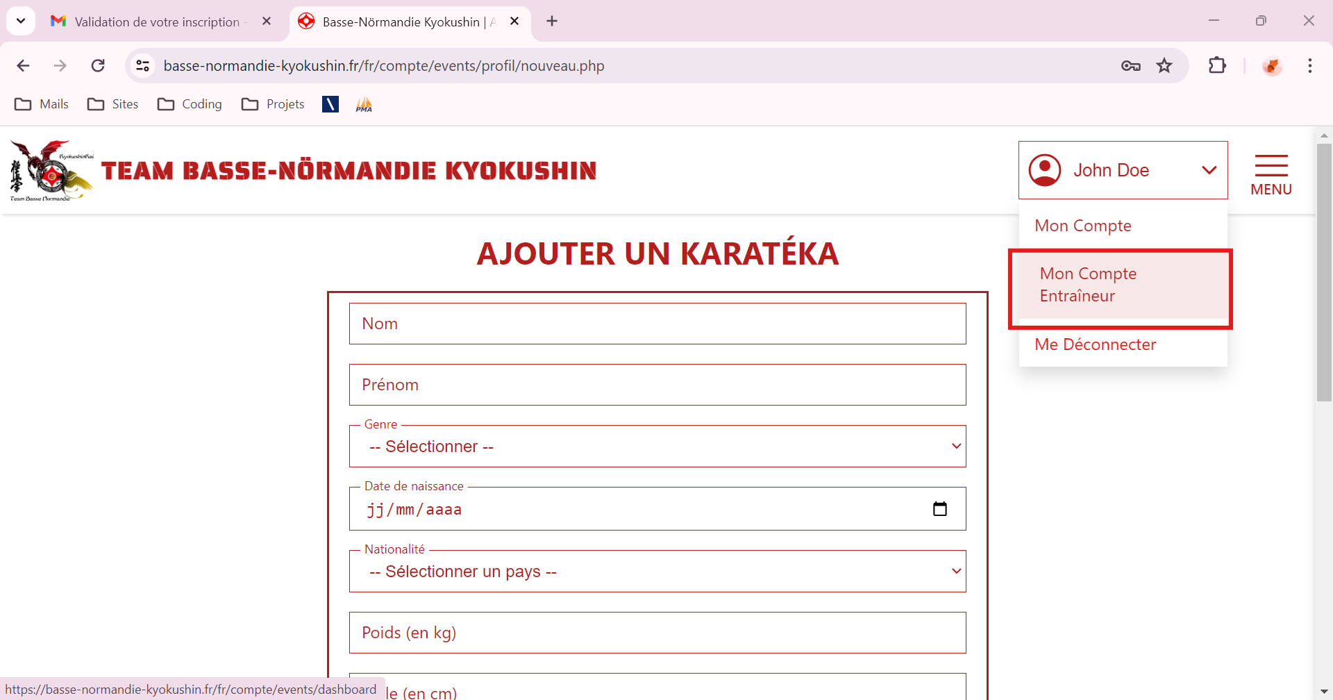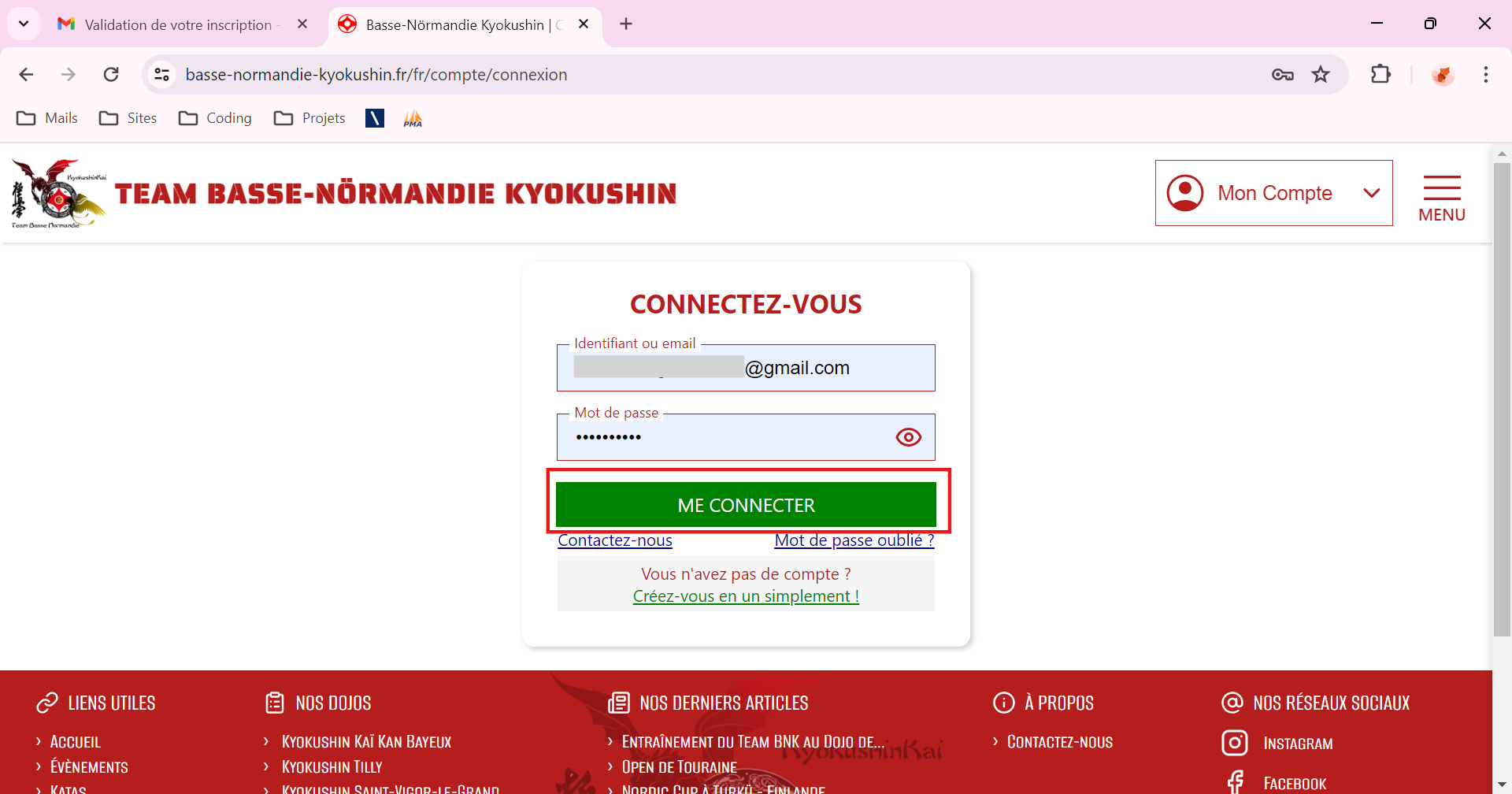 1. Créer un Compte sur le site https://basse-normandie-kyokushin.fr/fr/ :