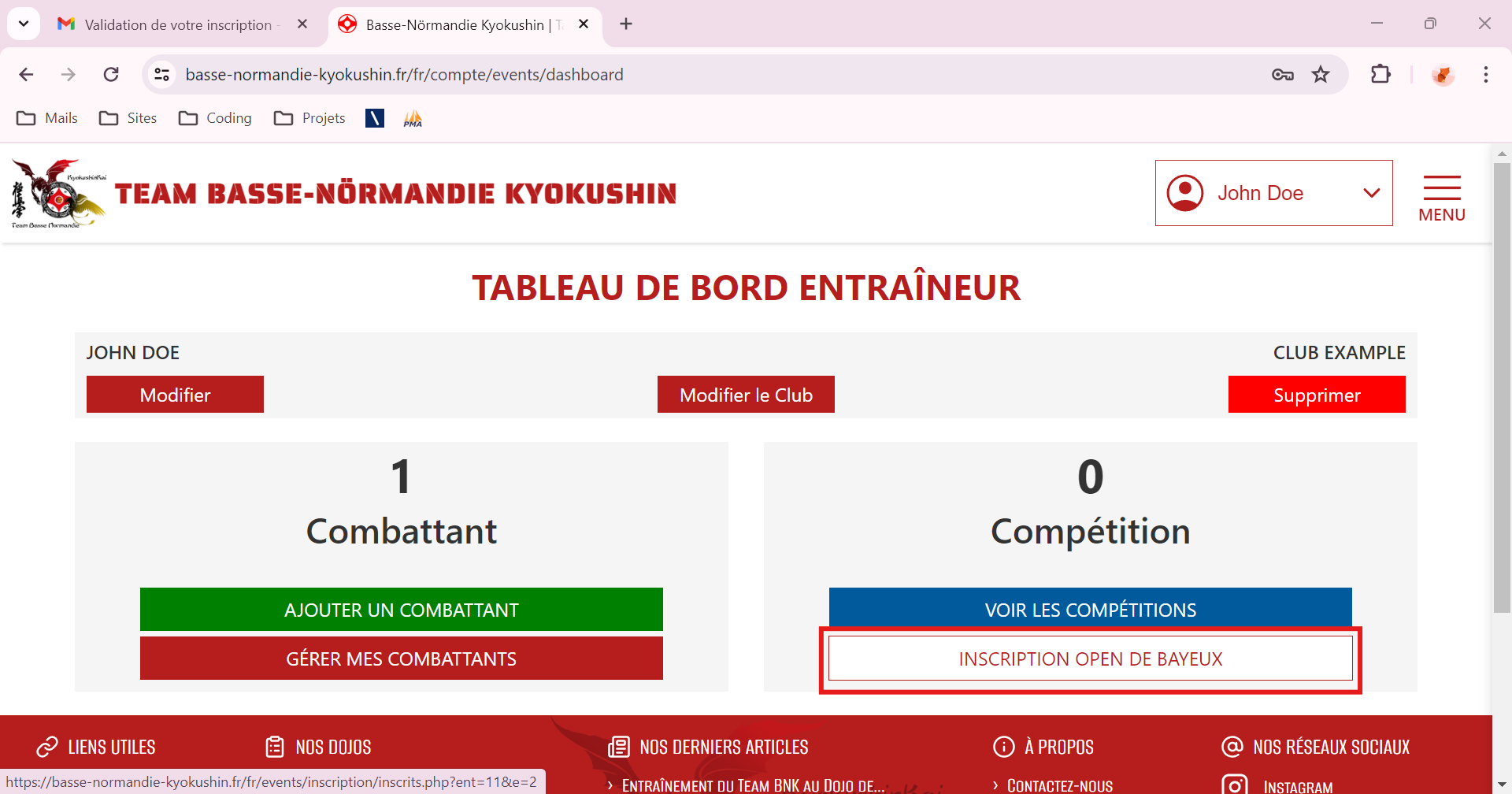 4. Inscrivez vos Combattants à l'Open de Bayeux :