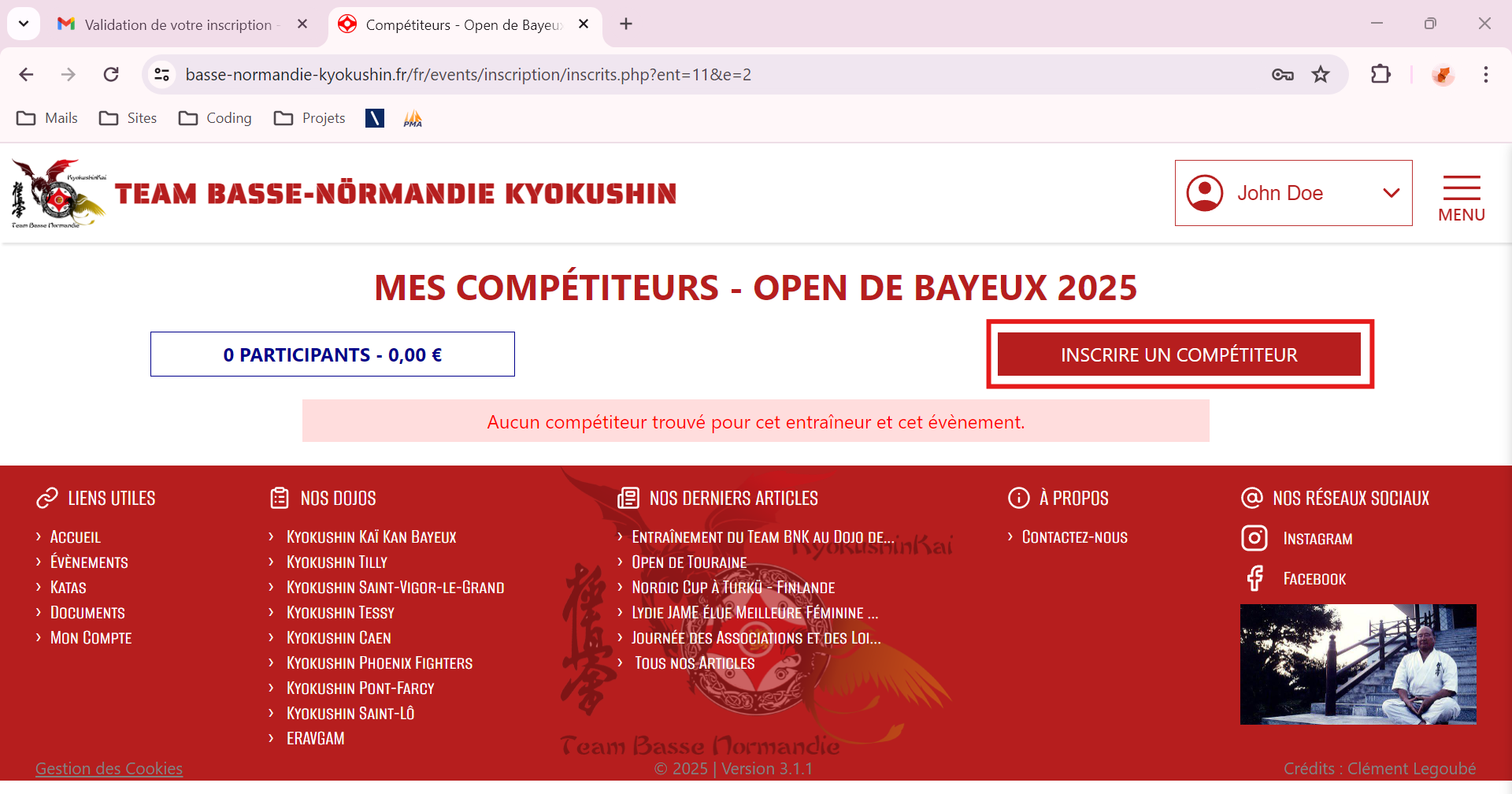 Découvrez un tutoriel complet sur comment inscrire vos compétiteurs à l'Open de Bayeux 2025 ! Attention, date limite : 30/11/25 !